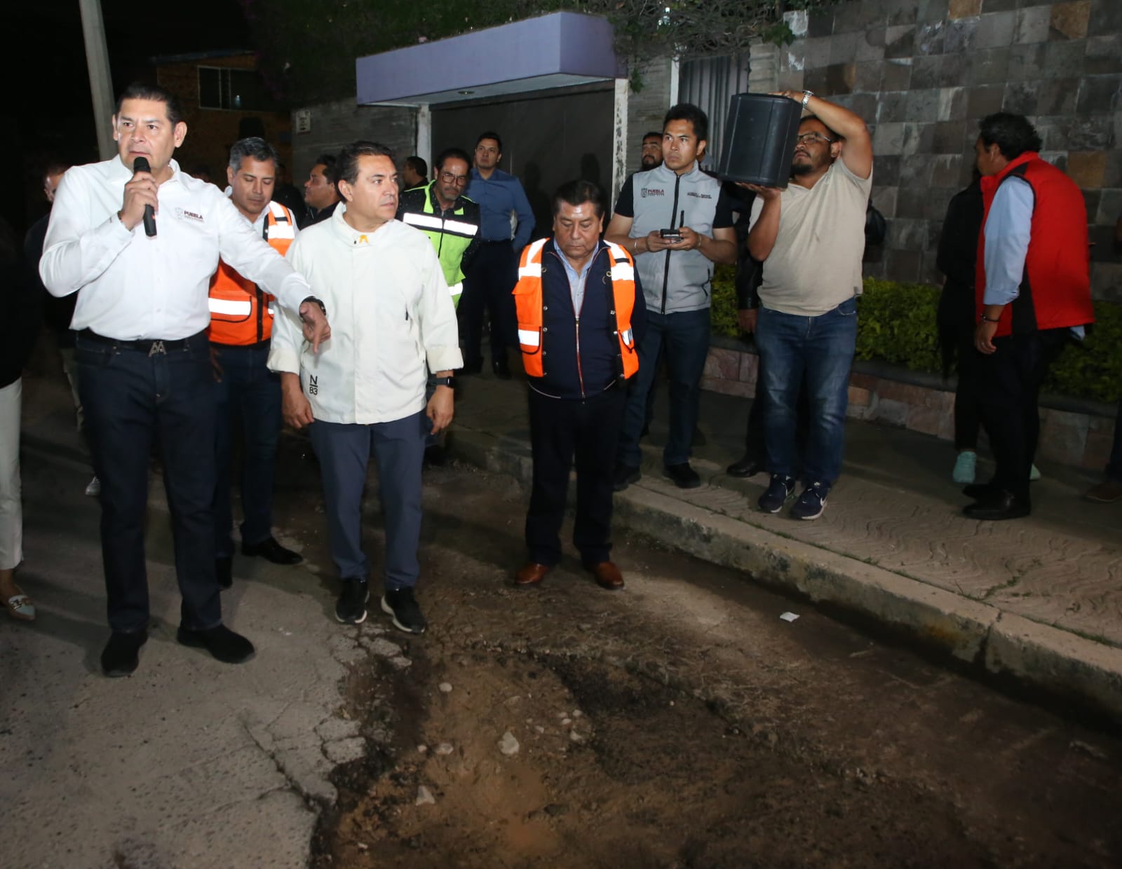 El pasado viernes, por la noche, en la colonia San Manuel, al supervisar los trabajos del programa “Bachetón”, hubo gente que aprovechó para reportar los baches, y el mandatario tomó nota y pidió se atendiera inmediatamente.