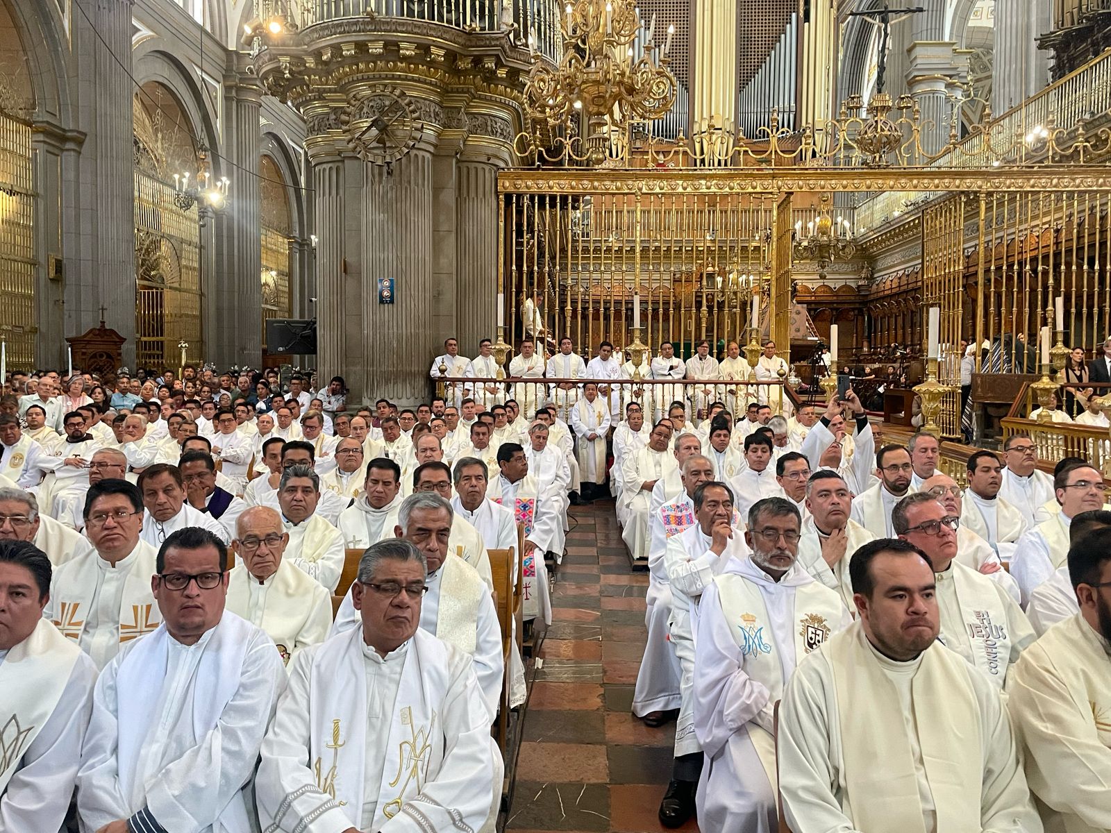 Durante esta solemne celebración, el señor arzobispo recibió la renovación de las promesas sacerdotales que cada año hace el clero poblano.