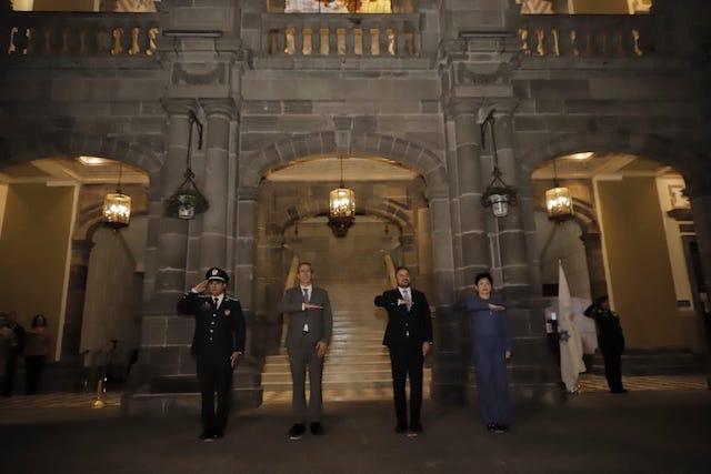 Ciudad de Puebla.- En los primeros minutos de este 15 de octubre, el alcalde Pepe Chedraui, y Guillermo Antonio Almazán Smith, director de la Academia de Formación y Profesionalización Policial, recibieron el mando de las fuerzas de vigilancia de la Ciudad y sus juntas auxiliares, para un período de gobierno que comprenderá de octubre de 2024 al mismo mes de 2’27.