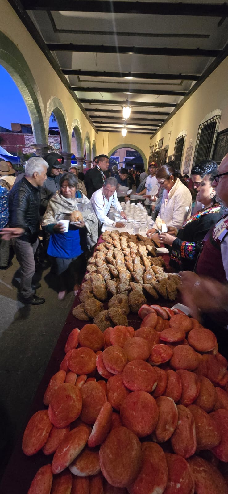 San Pedro Cholula, Puebla .- Esta mañana, en la Plaza de la Concordia, el Gobierno Municipal de San Pedro Cholula inició la entrega de pan y café a las y los peregrinos que arriban para participar en el Milenario Trueque.