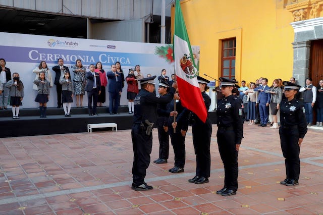 San Andrés Cholula, Puebla. – Como servidores públicos se tiene una gran responsabilidad, por ello se deben dar los mejores resultados para las y los sanandreseños, fue el mensaje de Mundo Tlatehui, presidente municipal, durante la Ceremonia Cívica del mes de diciembre.