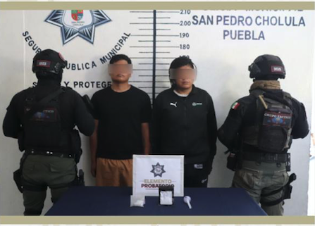 San Pedro Cholula, Pue. — Como resultado de los recorridos permanentes de vigilancia y la atención oportuna a conductas constitutivas de delito, la Secretaría de Seguridad Ciudadana de San Pedro Cholula (SSC Cholula) informó la detención de Isaac “N”, de 25 años de edad, y José Armando “N”, de 21 años, por su probable responsabilidad en delitos contra la salud, en la junta auxiliar Rafael Ávila Camacho (Manantiales).