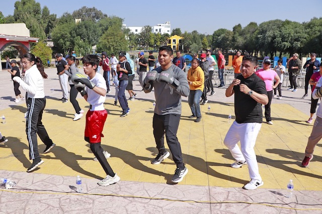 Al igual que ella, el mandatario Alejandro Armenta, encabezó la activación de box en el zócalo de la ciudad de Puebla, seguido de centenares de jóvenes; al lugar acudió el alcalde Pepe Chedraui.
