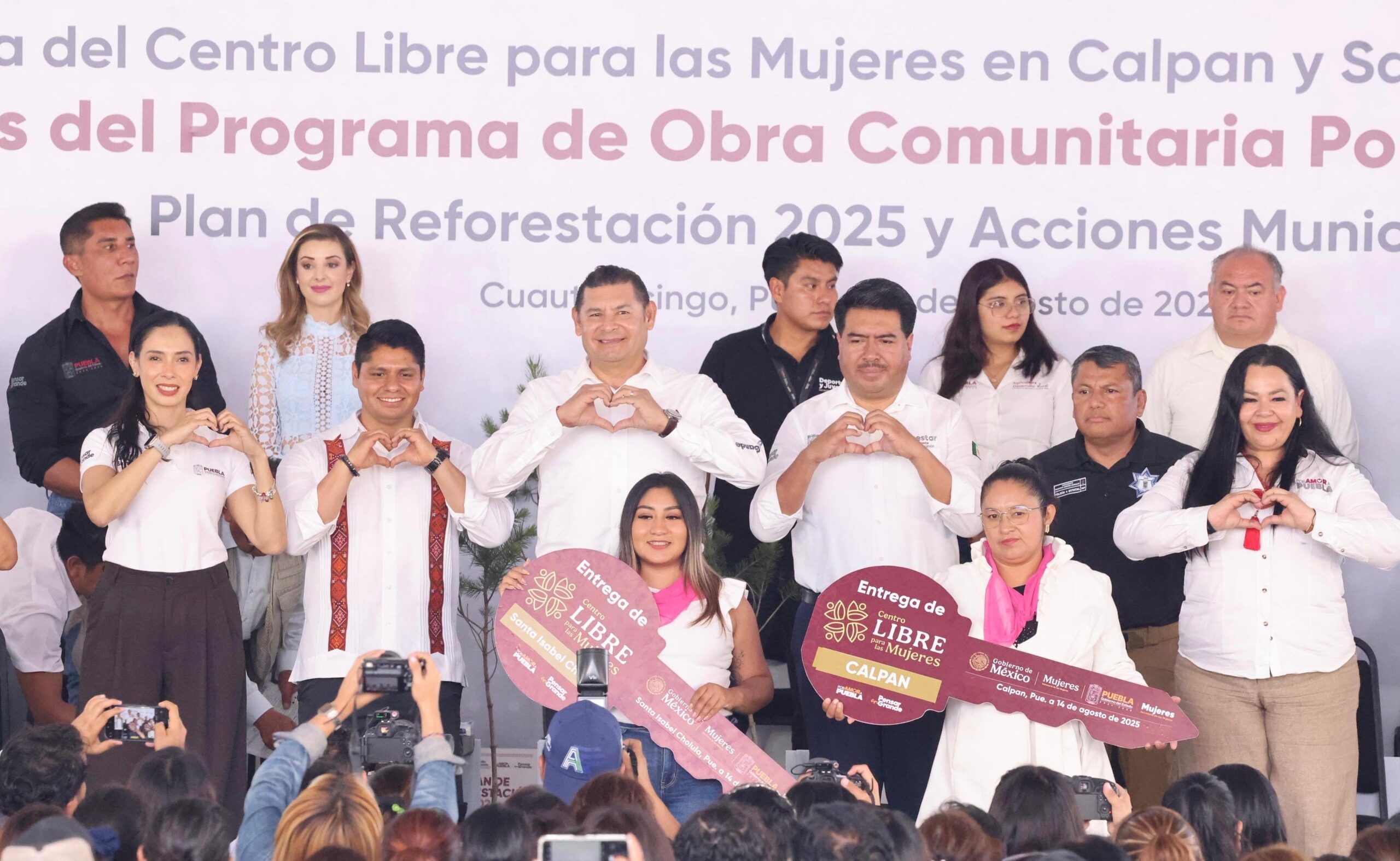 CUAUTLANCINGO, Pue.— Como parte de la estrategia nacional encabezada por la presidenta Claudia Sheinbaum para erradicar la violencia de género y garantizar la autonomía de las mujeres, el gobernador de Puebla, Alejandro Armenta, entregó este jueves las llaves de los nuevos Centros LIBRE en los municipios de Santa Isabel Cholula y Calpan.