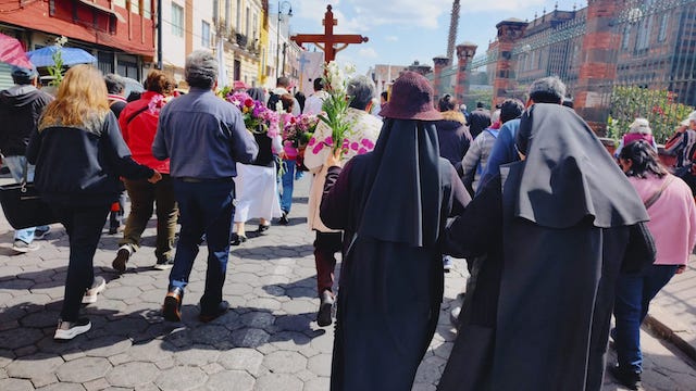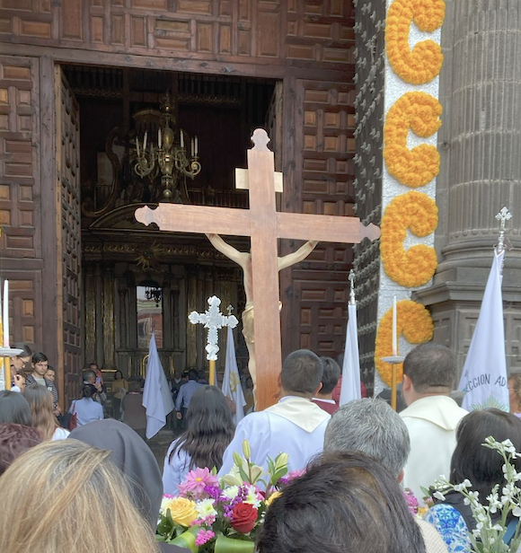 Posteriormente, los fieles marcharon en peregrinación a la Catedral de Puebla, pasando por la Puerta del Perdón, y participaron en la Santa Misa con celebrada por Monseñor Javier Martínez Castillo y el Sr. Canónico Padre José Luis Reyeros.