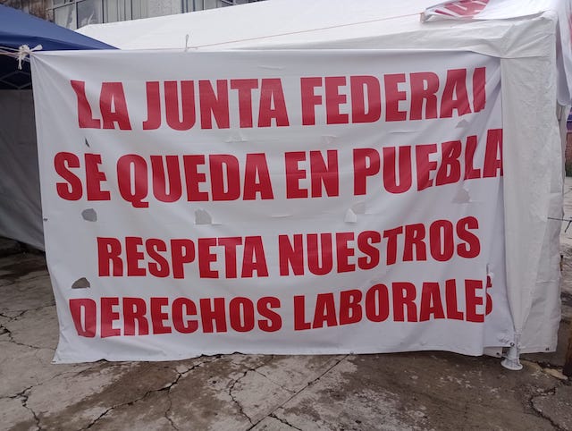 Se mantiene plantón para exigir que Junta Federal de Conciliación y Arbitraje se quede en Puebla