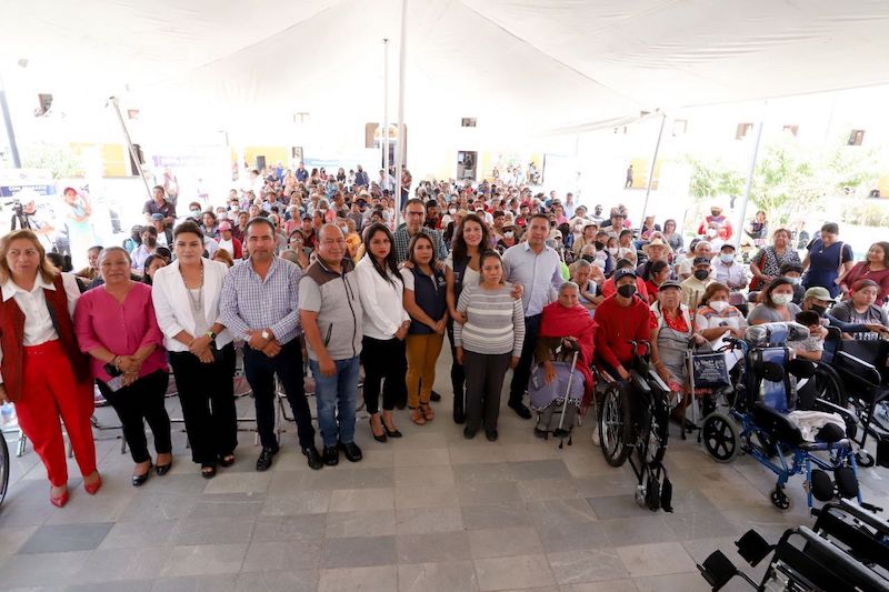 San Andrés Cholula, Puebla. – Como parte del programa “Cambiando Vidas”, a cargo del Sistema Municipal para el Desarrollo Integral de la Familia (SMDIF), que tiene por objetivo mejorar la calidad de vida de grupos vulnerables, se llevó a cabo la entrega de 200 aparatos de movilidad en la explanada del zócalo.