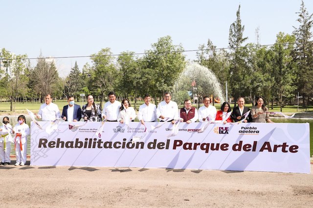 Ciudad de Puebla.- El gobernador Sergio Salomón Céspedes, y el alcalde Edmundo Tlatehui, encabezaron el inicio de los trabajos de rehabilitación del Parque Del Arte – en la Reserva Territorial Atlixcáyotl- uno de los más visitados por poblanos y turistas, como parte de la convivencia familiar, principalmente los fines de semana.
