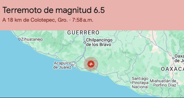 El Servicio Sismológico Nacional (SSN) informó que el sismo fue de magnitud 6.5, con epicentro en San Marcos, Guerrero. Se si tío en la Ciudad de México y Puebla.
