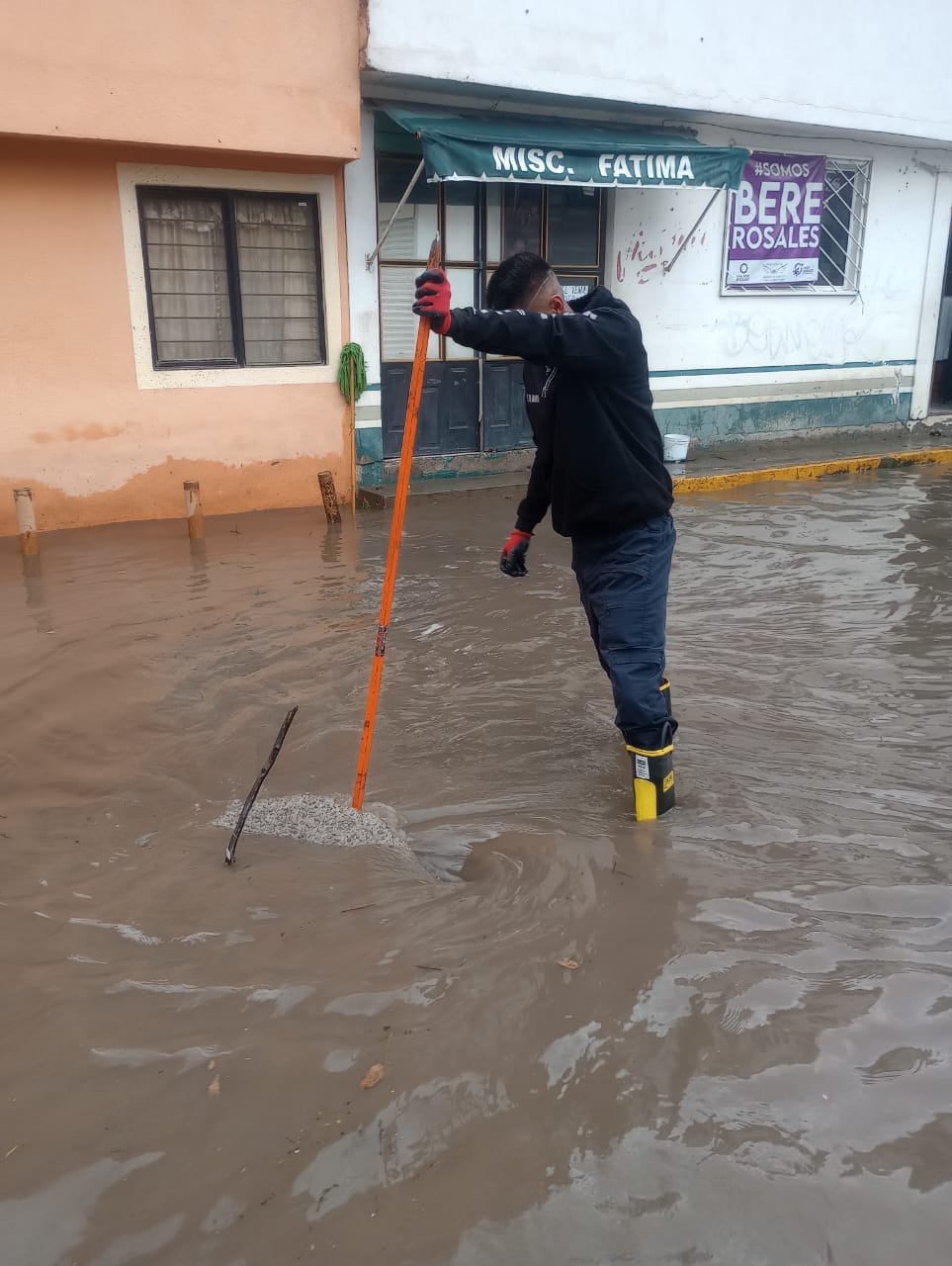 En calle Moctezuma y los Álamos, en la cabecera municipal, los elementos levantaron las alcantarillas para limpiarlas como maniobra de desazolve y bajar el nivel del agua; en el segundo punto, la calle se inundó por el desbordamiento del canal.