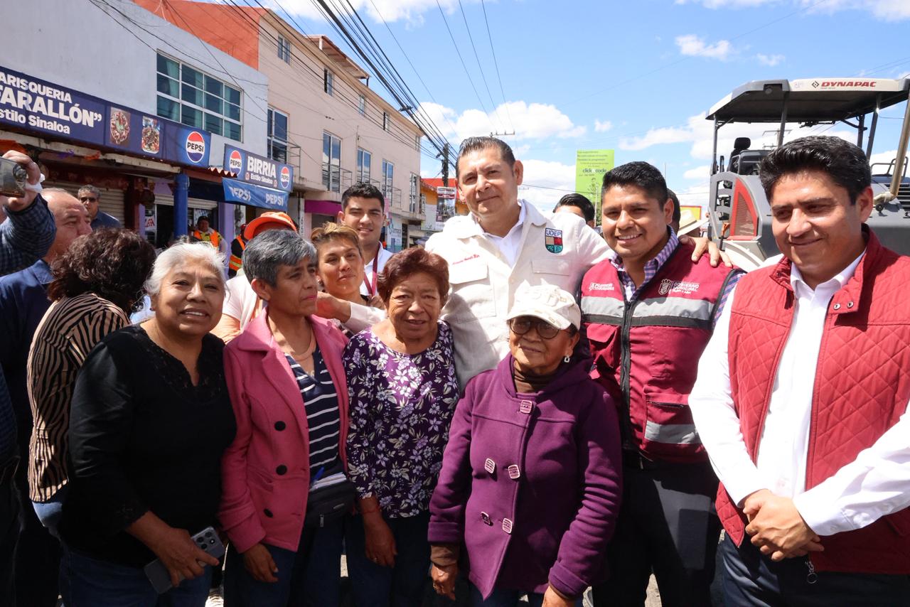 Supervisa gobernador Armenta pavimentación en Camino Real a Cholula y Zavaleta