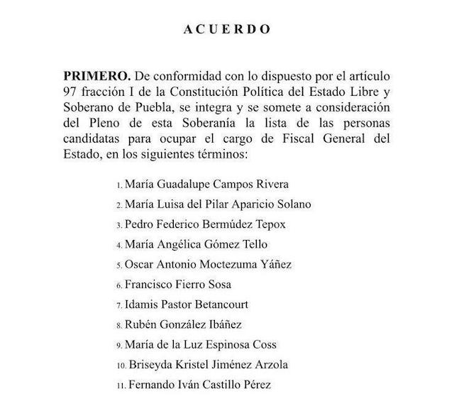 Sin Secretos / Angy Bravo Ciudad de Puebla.- El Congreso del Estado aprobó una lista de 11 perfiles para el cargo d Fiscal General del Estado...