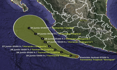 Foto especial Diariosinsecretos.com Colima.- La tormenta tropical “Enrique”, se convirtió en huracán, en la zona del Pacífico, que conlleva a fuertes lluvias, y se extiende al...