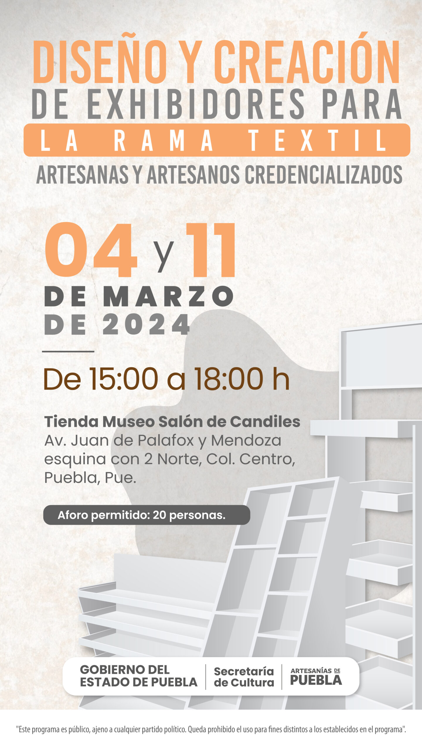Podrán participar personas adscritas al Padrón Artesanal de la Secretaría de Cultura CIUDAD DE PUEBLA, Pue.- Durante el mes de marzo, el gobierno presente de Sergio Salomón,...