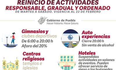 Diario Sin Secretos.- Con cambios y adiciones el Gobierno del Estado de Puebla presentó las medidas para la #ReaperturaResponsableEnPuebla Sobre actividades sociales, económicas y administrativas a...