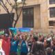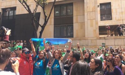 Mujeres Provida, alzando la pañoleta azul, en defensa de la vida; atrás, féminas en apoyo a ley aborto: (Foto Twitter) *Colombia: Corte Constitucional le dice...