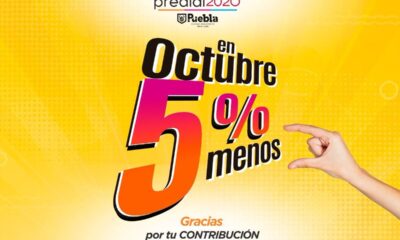El ayuntamiento de Puebla anunció el descuento del 5% en el pago total del predial y servicios de limpia, válido únicamente durante octubre de 2020. Armando...