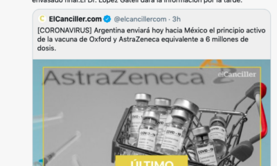 Diariosinsecretos.com/ 18 de enero de 2021.- Marcelo Ebrard, titular de la Secretaría de Relaciones Exteriores, por medio de redes sociales informó que este lunes Argentina enviará...