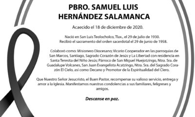 Diariosinsecretos.com/ 18 de dic. de 2020.- Arquidiócesis de Puebla lamenta la muerte del Padre Samuel Hernández y emitió el siguiente comunicado: Con profunda pena, comunicamos el...
