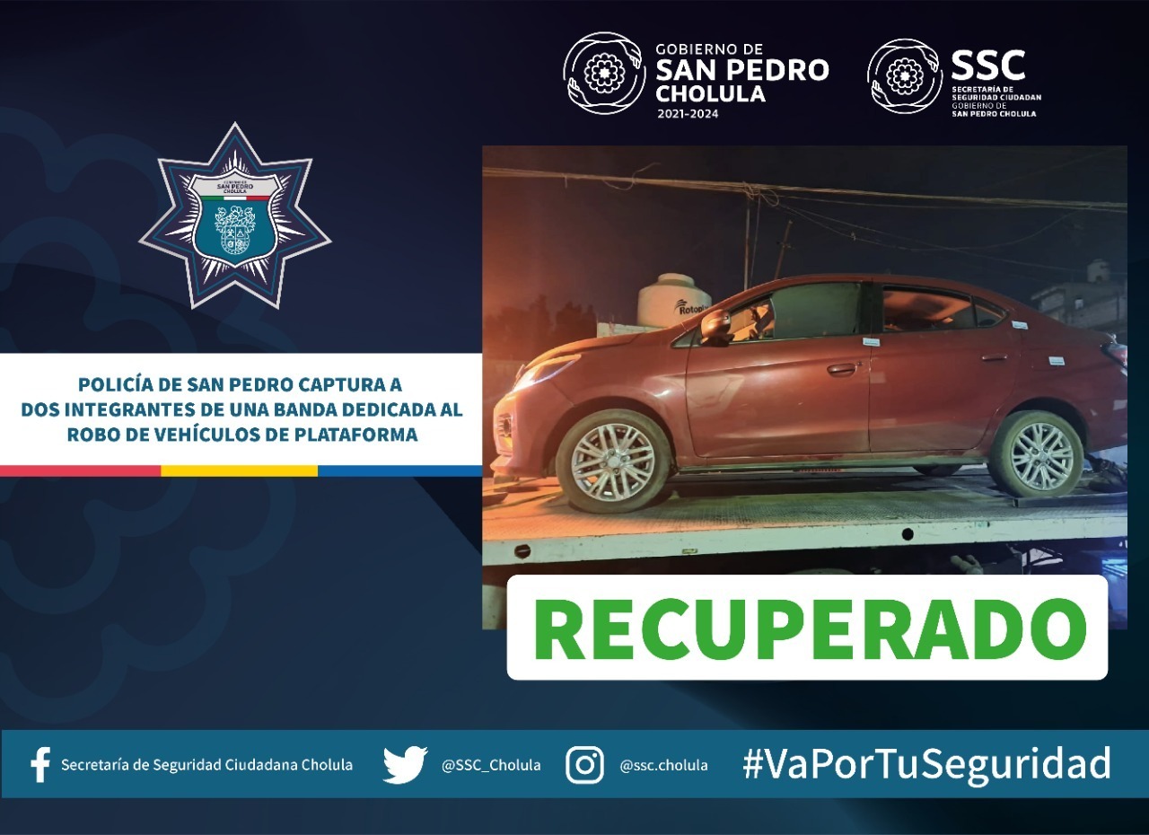 DiarioSinsecretos.com San Pedro Cholula, Puebla.-Gracias a la atención oportuna de elementos de la Secretaría de Seguridad Ciudadana de San Pedro Cholula, fue asegurado José Arturo «N»...