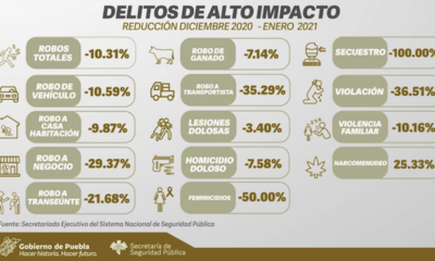 *Delitos de alto impacto presentan reducciones significativas Diariosinsecretos.com Puebla capital.- La incidencia delictiva en el estado mantiene una reducción mes a mes, conforme a la información...