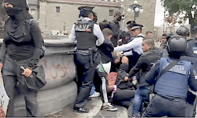 Foto Captura red social X: Diario Sin Secretos / J. Antonio Cuéllar M. Ciudad de Puebla.- Vandalismo y violencia se registró en el zócalo capitalino...
