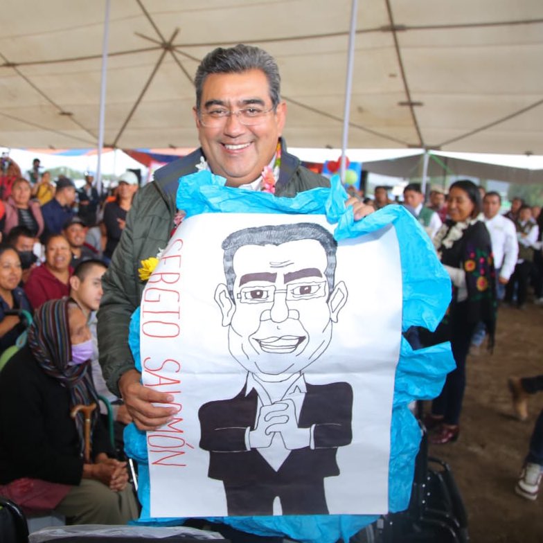 DiarioSinsecretos.com Palmar de Bravo.- el gobernador Sergio Salomón, muestra en su cuenta de twitter una caricatura de él que le regalaron en su visita a este...