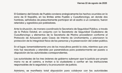 DiarioSinSecretos El Gobierno del Estado de Puebla condena enérgicamente los hechos ocurridos en la zona de El Nopalito, en los límites entre Puebla y Cuautlancingo, en...