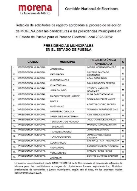 DiarioSinSecretos.com El último bloque de aspirantes aprobados por la Comisión Nacional de Elecciones de MORENA, en donde se menciona a Tonatzin Fernández, como la candidata a...