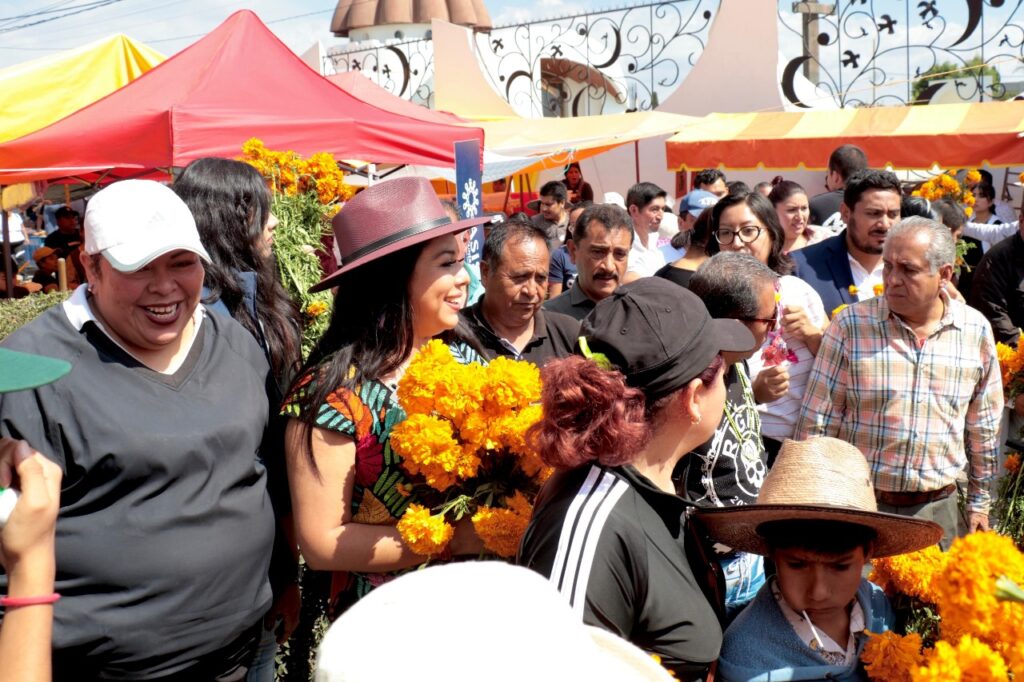 Tonantzin Fernández, acude a panteones y obsequia Flor de Cempasuchil a cholultecas