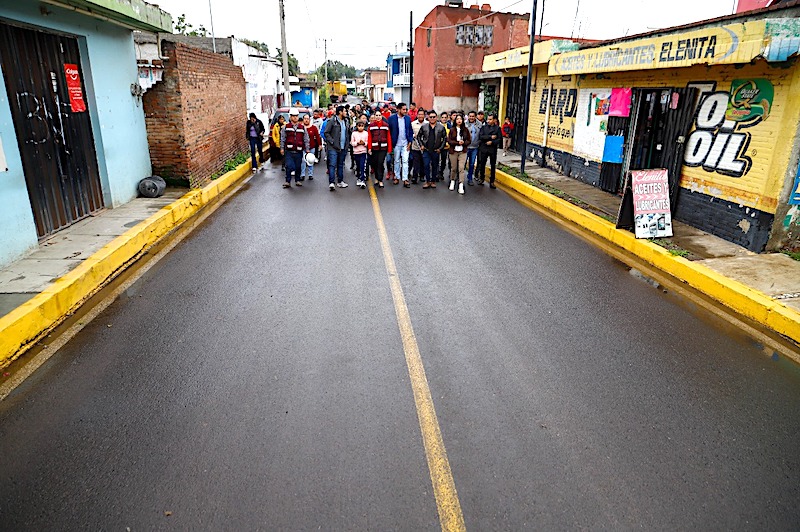 Rodeada por autoridades auxiliares y vecinos de la junta auxiliar, Tonantzin Fernández, inauguró la pavimentación d ellas calles Benito Juárez y El Venadito.