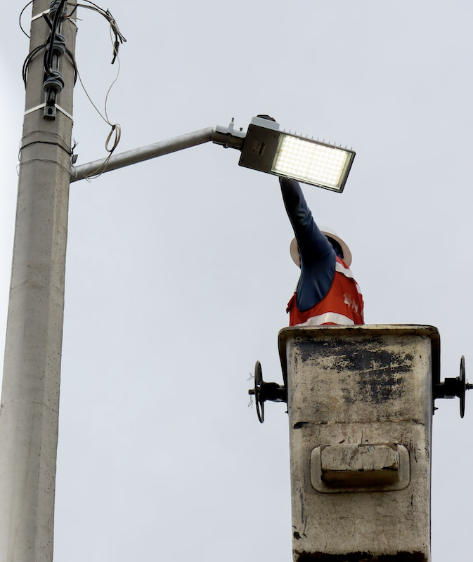 Las luminarias instaladas cuentan con tecnología LED de 100 watts y sistema fotoluminiscente, lo que permite su encendido automático al anochecer y contribuye al ahorro energético.
