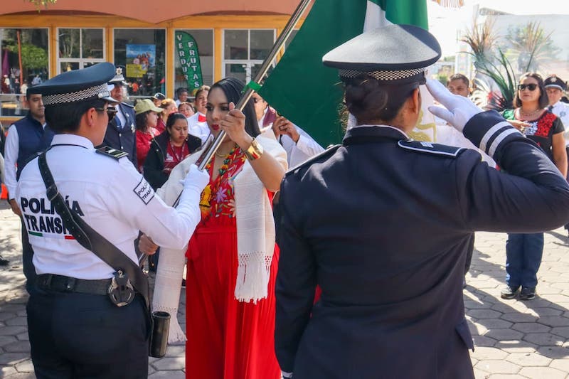 San Pedro Cholula, Pue.- Autoridades locales encabezadas por la alcaldesa Tonatzin Fernández, participaron en el desfile cívico con motivo de un aniversario más de la Independencia de México.