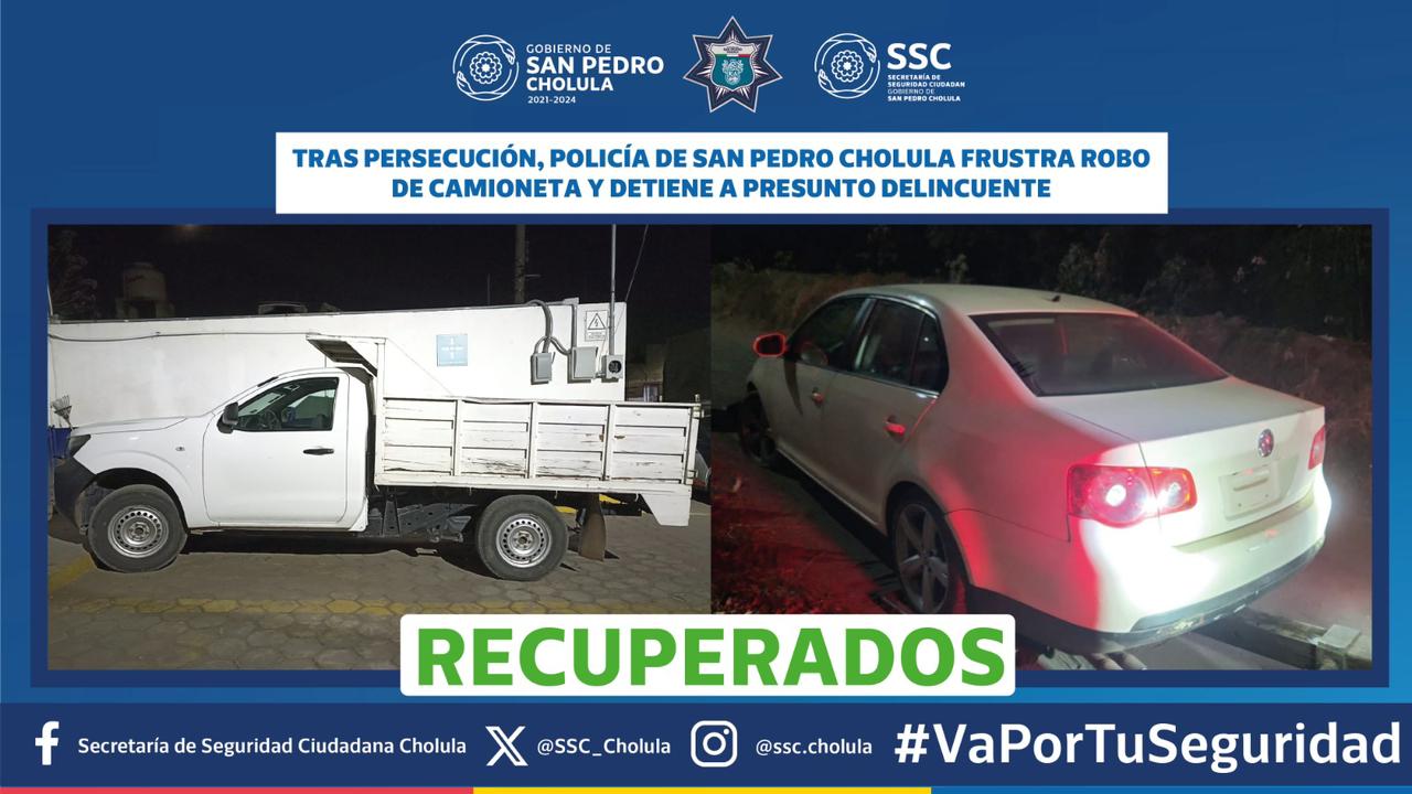 Tras persecución, policía de San Pedro Cholula frustra robo de camioneta
