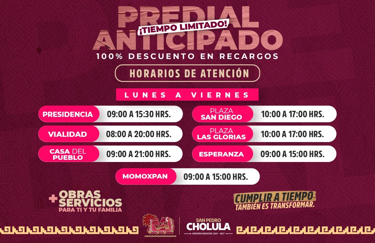 Última semana para los descuentos de predial en San Pedro Cholula